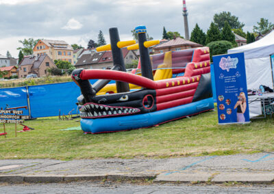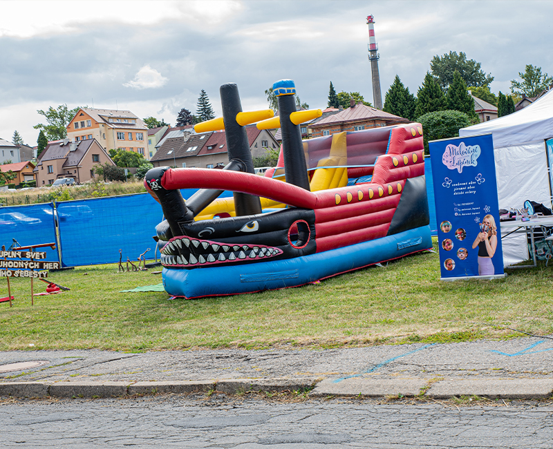 Skákací hrad a aktivity pro malé rockery, aby se rodiče mohli v klidu bavit.